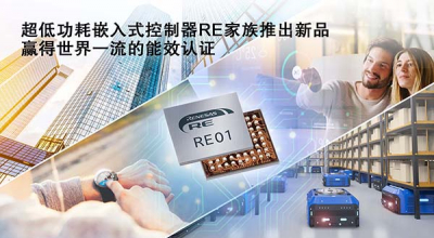 瑞萨电子扩展超低功耗嵌入式控制器RE产品家族,推出具有世界一流能效比的全新产品